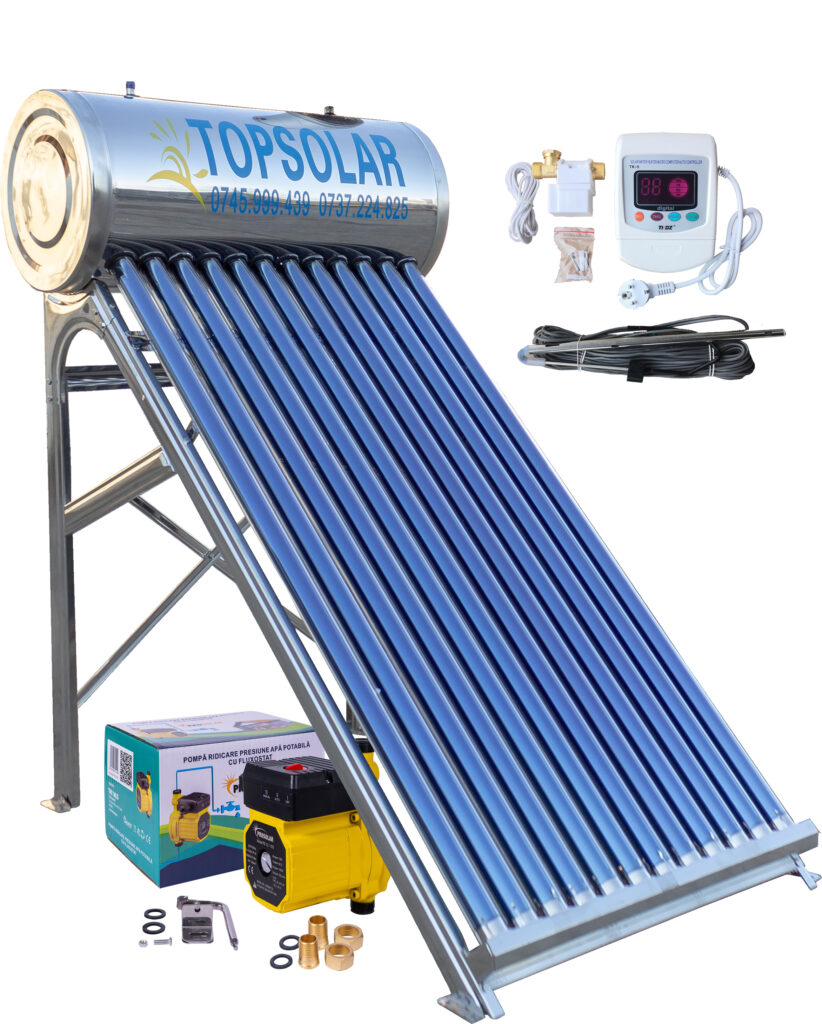 Astfel, ofertele companiei noastre pornesc de la sistemele alcatuite dintr-un singur panou presurizat format din 22 de tuburi superconductoare, accesoriul de monitorizare si comanda al intregului sistem – Steca TR 301, dar si un boiler prevazut cu 2 serpentine – la un cost de aproximativ 1500 de euro. Varianta accesibila este imbunatatita de patru ori pana la o ultima versiune a sistemului complet. Cel din urma este format din patru panouri presurizate, fiecare avand 30 de tuburi vidate, din acelasi controller electric si dintr-un boiler cu o capacitate de 1000L, la un pret de aproximativ 5500 euro.